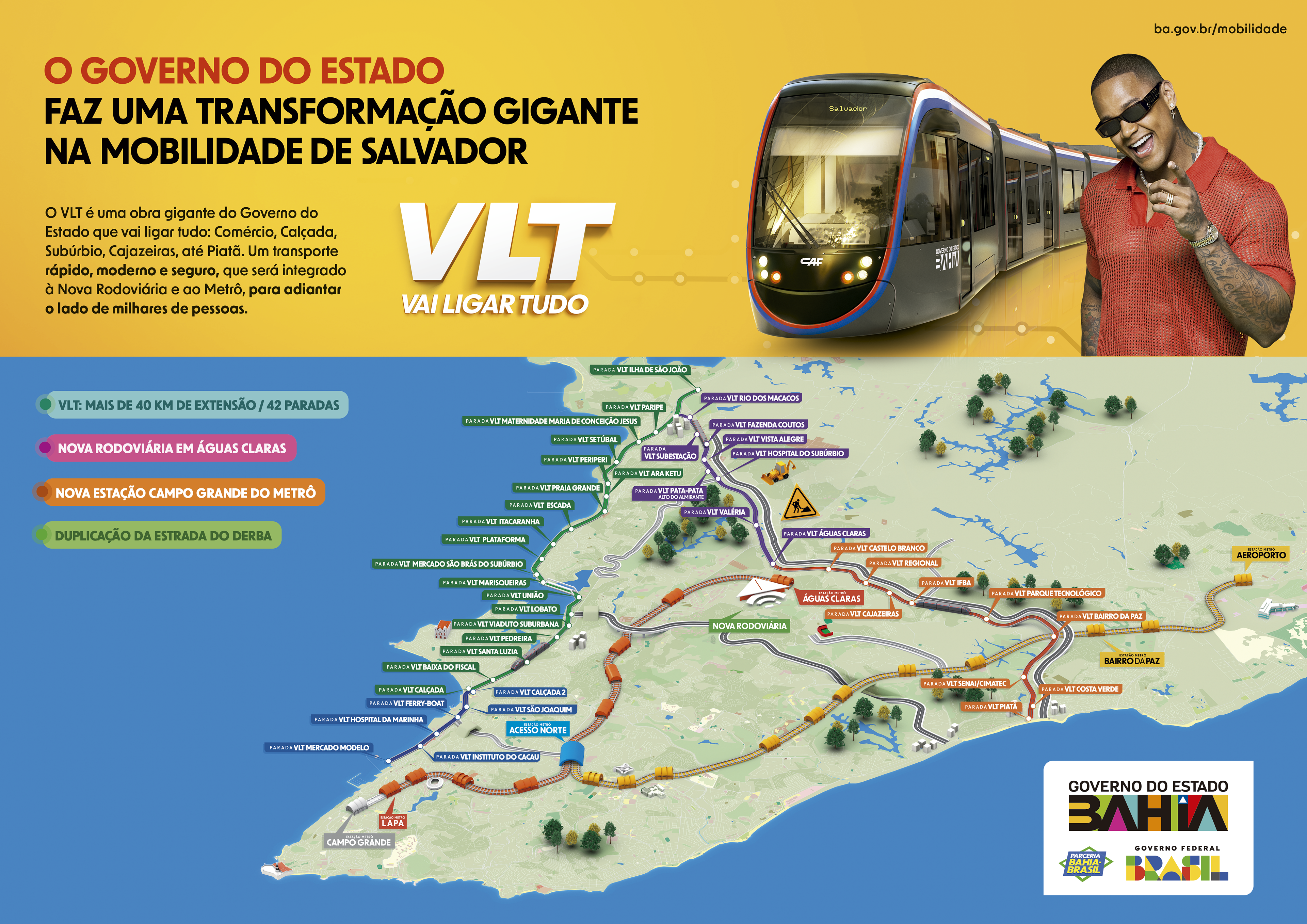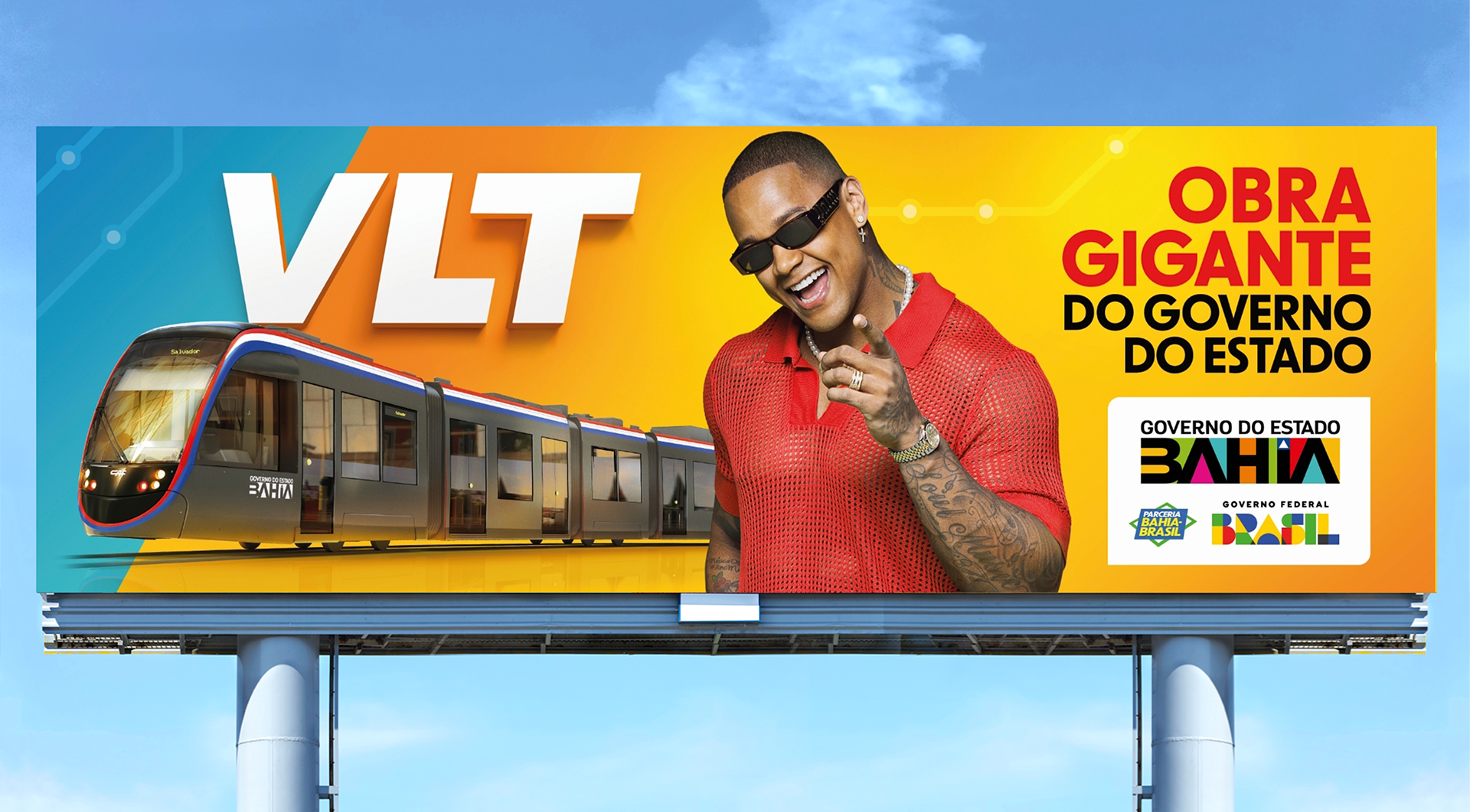 VLT = Vai Ligar Tudo. O trem do subúrbio deu lugar ao novo VLT em Salvador e pensamos no gigante Leo Santana, cria do subúrbio, como garoto-propaganda da entrega. Fizemos a campanha e também plotamos o vagão das viagens iniciais. Campanha assinada pela Leiaute Propaganda com direção de criação de Will Vieira e Bruno Mollicone. Textos de Bruno Mollicone e Rafael Palmeira. Direção de arte compartilhada com André Oki e Adriano Carvalho. Ilustração do vagão é de Samuka Marinho. A direção do filme é Og Cruz.